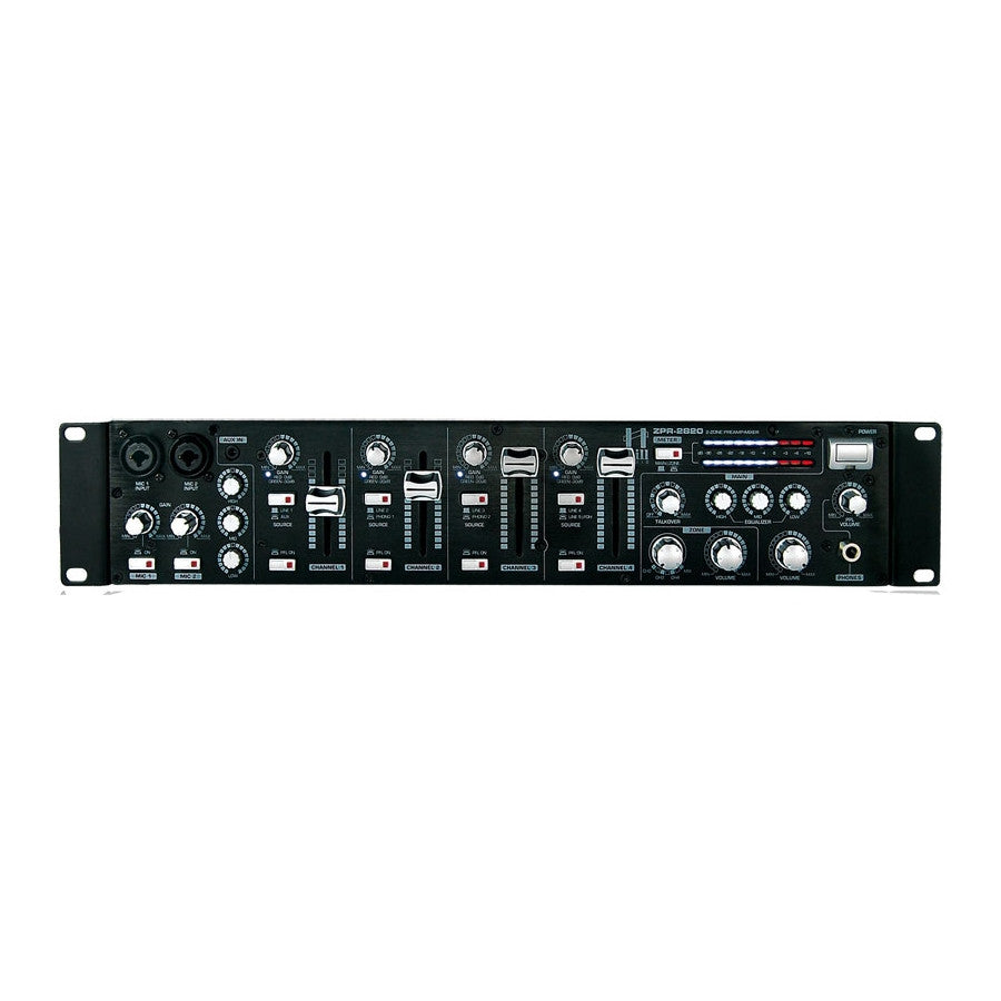 Il Mixer Rack ZPR2820 2-Zone è un prodotto specifico per installazione commerciale adatto a riprodurre audio primario e musica di sottofondo. Mentre l'interfaccia utente si adatta anche al DJing, le sue funzionalità lo rendono adatto alla diffusione di musica di sottofondo. In un'applicazione tipica, la musica può essere suonata da un DJ durante un fine settimana in un locale affollato mentre in un'altra sala o all'esterno del locale si diffonde musica soft - basta un attimo per invertire o unificare le due zone e diffondere il tutti e due gli ambienti la stessa fonte sonora, il tutto con lo stesso sistema audio e la stessa configurazione. Il sistema CascadeZone© unico rende il cambio rapido e comodo. Perfetto per qualsiasi locale polifunzionale, come pub, alberghi e ristoranti.