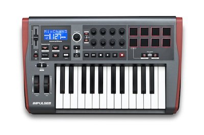 Controller 25 tasti USB e MIDI - Tastiera Fatar - Drum Pad retroilluminati - Ampio Schermo LCD - AutoMap - Software incluso: Ableton Live Lite, Bass Station e Loopmaster Sample Pac Impulse è un controller USB-MIDI di Novation con drum pad retroilluminati e controllo totale della DAW e dei plug-in disponibile in versioni a tastiera da 25, 49 e 61 tasti. Oltre alla tastiera di precisione, ai drum pad e alla superficie di controllo completa, Impulse viene fornito con la nuova versione 4 del pluri-premiato software Automap, che in un istante vi mette a disposizione il pieno controllo dei parametri della DAW e dei plug-in, sia interni che di terze parti La tastiera è semi-pesata con aftertouch e garantisce un’ottima risposta al tocco, mentre gli 8 drum pad sono retroilluminati per consentirvi di suonare beat, modificare arpeggi e lanciare clip in tempo reale in Ableton Live.I drum pad hanno 3 colori che indicano lo stato attuale della clip che controllano, esattamente come il Launchpad: un pad giallo indica che la clip è caricata, un pad verde indica che la clip è in riproduzione mentre un pad rosso indica che la clip è in registrazione Impulse può essere alimentato via USB oppure utilizzando un adattatore USB di alimentazione.