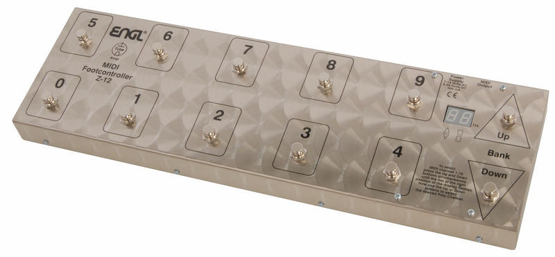 Engl Z12 - Robusta MIDI footswitch in rugged steel chassis. Switches all MIDI programm changes. 16 MIDI channels 128 presets. Powered via external power pack, Z-11 MIDI switcher or Z-7 MIDI interface. Includes MIDI cable (AC Adapter not included). Peso: 2.8kg