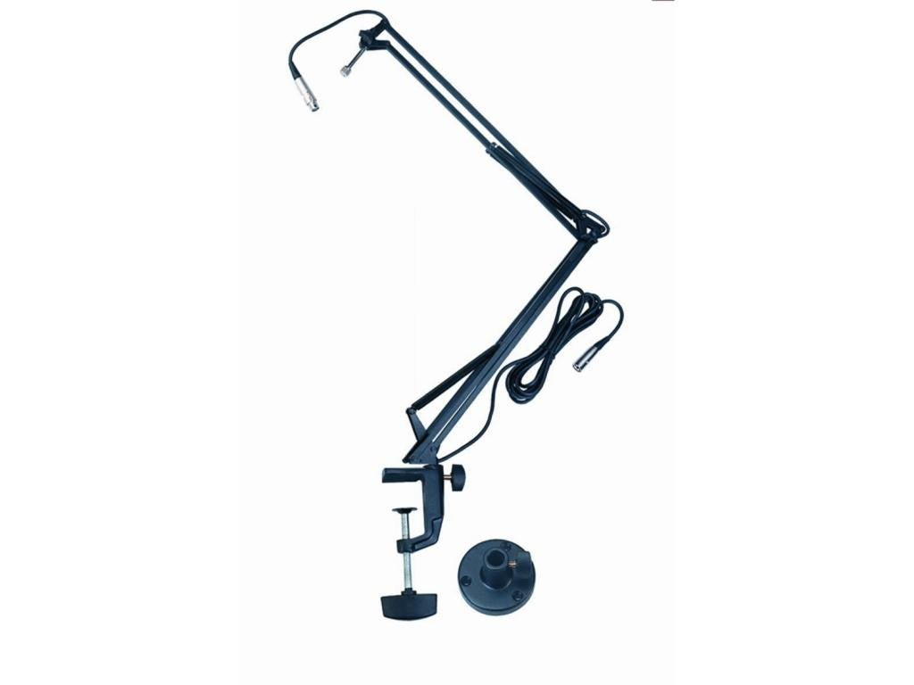 Supporto per microfono snodabile, dotato di morsetto per il fissaggio al piano di lavoro. Completo di cavo per microfono xlr xlr
