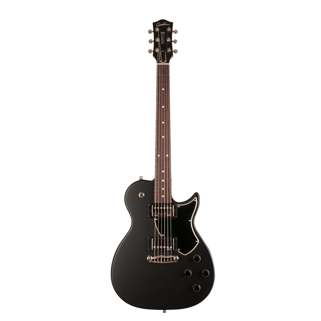 The Summit Classic SG Matte Black packs both bark and bite with lively and rich tones, thanks to its Canadian Laurentian Basswood body and Godin Custom humbuckers in the neck and bridge. An Ergocut Rosewood fingerboard promises an incredibly comfortable playing experience.