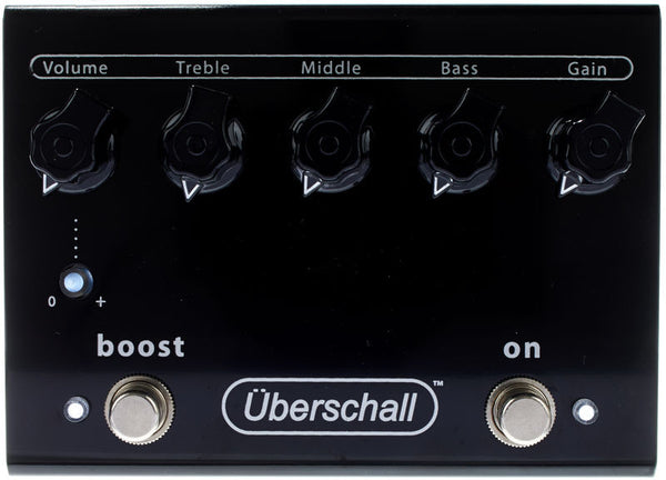 Pedale UBERSCHALL - Replica il canale LEAD del famoso omonimo amplificatore - Cinque stadi di gain - Controlli: Gain, Alti, Medi, Bassi, Volume - Crunch e overdrive che dona dinamica e forza al vostro strumento