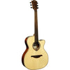 Corpo auditorium cutaway - Top massello in abete Engelmann - Fondo e fasce in khaya laminato - Hardware Black Satin - Finitura Glossy - Ponte in Brownwood (pinus radiata) - Manico in Khaya - Tastiera in Brownwood (pinus radiata) - Radius 350 mm - Scala 650 mm - Capotasto e selletta in Graphite - Meccaniche Die Cast - Preamp Stage-Lag