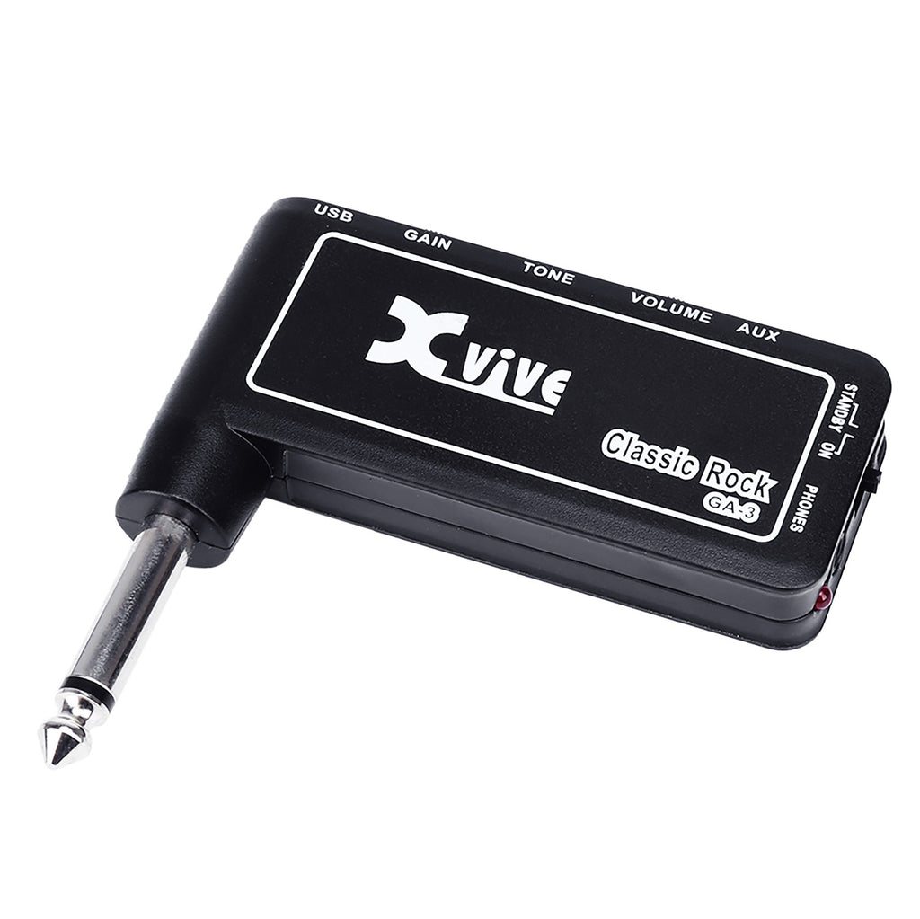 Controlli di Gain, Tone, Volume - Uscita cuffie Jack 3,5mm stereo - Ingresso AUX Jack 3,5mm stereo - Switch Standby/On - Batteria al Litio integrata - Ricarica tramite presa Mini USB - Cavo Mini USB incluso