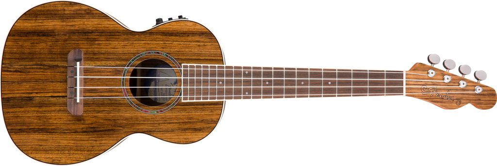 Packed with elegant style and top-notch features, the tenor-sized Rincon Ukulele has a rich, deep voice that's uniquely inspiring. "Electrifying" isn't a word one usually associates with ukuleles, but for players who want to plug in and get loud, the Rincon features an onboard Fishman® Kula preamp. Crafted from ovangkol, with a solid top for enhanced volume, this ukulele sings with full-bodied chime while boasting a natural appearance. A pull-through bridge, bone nut and saddle, and eye-catching abalone rosette round out the modern features. The Rincon V2 now features a 4-in-line Tele® headstock with vintage-style closed-back tuning machines, for that unmistakably classic Fender look. Whether you're counting sets on the coastline or playing your heart out on stage, your Rincon Ukulele is ready to help you make waves.