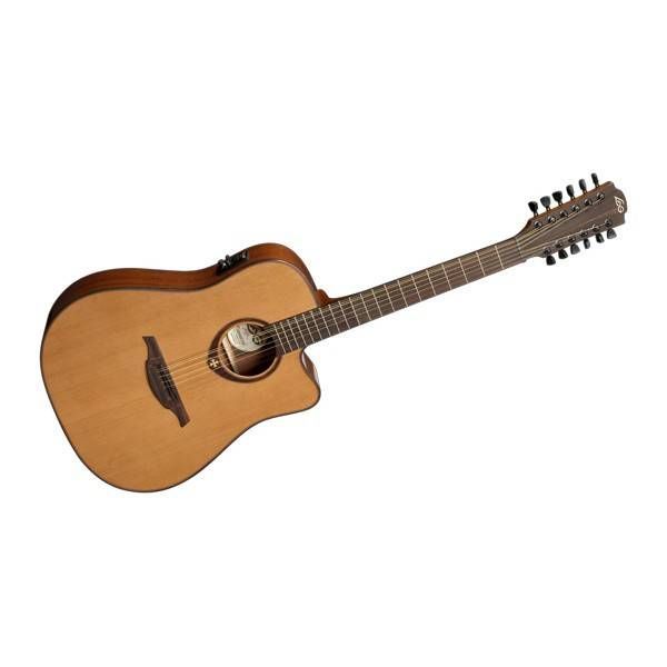 Dreadnought 12 corde- Top in cedro rosso massello - Fasce e fondo in mogano - Manico in mogano miele satinato - Tastiera in palissandro indonesiano - Ponte in palissandro indonesiano con selletta in grafite nera - Finiture satinate - Paletta in palissandro indonesiano massello con inlay logo Lag in acero - Meccaniche nere satinate con tuners ad alta precisione.