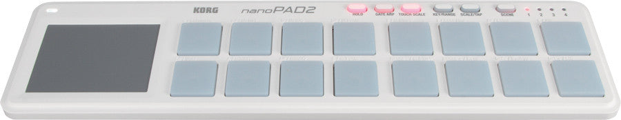 Come tutti i controller nano SERIES2, il nanoPAD2 è compatto, leggero, dalle giuste dimensioni per essere posizionato di fronte al tuo portatile. nanoPAD2 offre 16 pad sensibili alla dinamica utilizzabili su 4 banchi differenti, per un totale di 64 pad, e un touch pad X-Y. In più, con la nuova funzione "Touch Scale" derivata dal Kaossilator PRO potrai suonare in modo intuitivo frasi musicali direttamente dal touchpad. La funzione "Gate Arp" - anch'essa derivata dal Kaossilator Pro - servirà per trasmettere note MIDI arpeggiate in sequenza e sincronizzate alle impostazioni di tempo (Tap Tempo e Temp Sync). Combinando le funzioni Touch Scale e Gate arp potrai suonare frasi melodiche e ritmiche sincronizzate alla velocità desiderata passando semplicemente il dito sul touchpad, e/o premendo i pad.