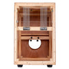 CAJ-100 è il Cajon di Sakae che spicca per versatilità ed espressività grazie all'esclusivo design che consente di suonarlo su tutti i lati compreso il retro. La robusta struttura del telaio permette l'utilizzo di legni più sottili per il rivestimento sviluppando una maggiore risonanza armonica. Il timbro di ogni superficie del Cajon è stato messo a punto variando il numero di strati di compensato utilizzato, per offrire il massimo della versatilità timbrica. Le due cordiere risonanti, del tutto simili a quelle utilizzate nei rullanti, generano un suono nitido con un rapido decadimento. La tensione delle cordiere può essere regolata sia nella parte superiore che in quella inferiore della superficie di impatto. E' possibile, ad esempio, stringere la parte inferiore ed allentare quella superiore per produrre timbri differenti in base alla zona suonata. La parte frontale del Cajon è rivestita consentendo l'utilizzo delle spazzole per la massima suonabilità.