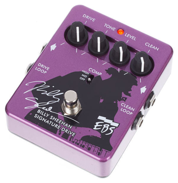 EBS-BSS - Billy Sheehan Signature - Drive - Special Effects Series - Sviluppato in stretta collaborazione con Billy Sheehan - Nasce dall'esigenza di miscelare il segnale pulito con quello distorto preservando le basse frequenze senza perdere la definizione - Controlli: Drive + Tone + Level + Clean + Comp (High/Mid/Off) - Switches: On/Off (True Bypass) - Alimentazione: Batteria 9V (Non inclusa)/Alimentatore 9-12V DC 15mA max - Dimensioni: 90x115x35mm - Peso: 480g.