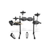 Apri lo scatolone e troverai l’Alesis Turbo Mesh Kit fornito di tutto ciò che ti occorre per cominciare subito a suonare, bacchette incluse. Troverai i cavi, l’alimentatore e la chiave per l’assemblaggio, per montare e connettere subito il tuo nuovo drum kit. Il Turbo Electronic Drum Module La batteria elettronica Alesis Turbo Mesh Kit include il modulo sonoro che copre qualsiasi genere musicale. Potrai cercare e caricare i kit di suoni usufruendo del luminoso display LCD e dei comodi e ampi pulsanti. Grazie all’ingresso ausiliare su connettore minijack stereo da 1/8” potrai connettere lettori CD e player audio al modulo per usarli come basi musicali sulle quali allenarti. Se ciò non bastasse, la porta USB di tipo “B” presente nel modulo del Turbo Mesh Kit ti consente di collegarti a computer PC, Mac e device iOS (serve l’Apple lightning to USB adapter non incluso) e di suonare app, software musicali e virtual instrument direttamente dai pad. Qualsiasi sia la tua necessità, questo kit te la soddisfa. Allenati e migliora il tuo drumming Sfrutta le opportunità di allenamento che il Turbo Mesh Kit ti mette a disposizione per migliorare i tuoi fill e il tuo timing. Con le 30 basi musicali e il metronomo integrato, il Turbo Mesh Kit ti offre l’opportunità di esercitarti e di fare passi avanti nell’apprendimento pratico sulla batteria sfruttando anche l’allenatore virtuale. Connettività completa Alza il volume o allenati in silenzio, qualsiasi sia la tua preferenza, il Turbo Mesh Kit ti mette a disposizione un’uscita audio stereo su prese (L e R) jack da ¼”, per collegarti ad un mixer o direttamente ad un impianto audio amplificato, e un’uscita cuffia su minijack da 1/8” per suonare senza disturbare.
