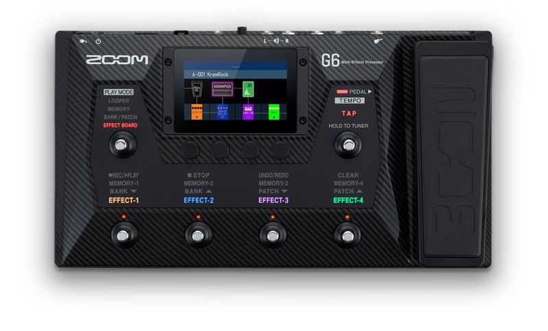 16 modelli di amplificatori storici + 6 simulazioni originali Zoom - 70 IR precaricate + 22 modelli di cabinet - 120 Ir totali (70 preset + 50 user) 2 nuove distorsioni e 3 modulazioni originali Zoom - Fino a 7 effetti + 1 amp (o 9 effetti) simultanei - 240 patch memorizzabili (factory e user) - Display touchscreen a colori da 4.3" - 4 potenziometri per accesso diretto parametri Amp - 6 footswitch integrati - Ingresso chitarra con selettore attivo/passivo - 45 secondi di loop stereo o 90 secondi mono + 68 pattern ritmici - Fx Loop esterno posizionabile liberamente in catena - Stereo Out tramite 2x Jack 6.35mm - Uscita cuffia jack stero 6.35mm - Pedale espressione integrato - Presa per pedale espressione addizionale - Presa AUX in - Porta SD card per memoria looper/IR - Modalità interfaccia audio USB 2-in/2-out - Presa per adattatore Bluetooth Zoom BTA-1 (opzionale) - Presa USB-C per connessione a PC/Mac - Software Guitar Lab e Cubase LE(Mac/Windows) incluso - Dimensioni (mm): 418 (L) x 228 (p) x 65 (a) - Alimentatore AD-16 incluso