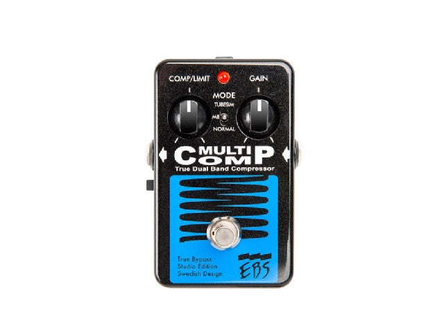 EBS-MC-SE - MultiComp - Compressore per basso - Studio Edition Series - Dotato della nuova tecnologia "True Bypass Signal Relay Switching" - Ideale sia live che in studio - Protezione contro il voltaggio eccessivo - Controlli: Comp/Limit + Gain + Mode (Tubesim/MB/Normal) - Switches: On/Off (True Bypass) + Active/Passive - Alimentazione: 9-12V DC 35mA max - Dimensioni: 70x115x35mm - Peso: 400g.
