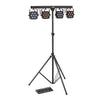 4LEDKIT-DJ ti offre un sistema luci completo comprensivo di tutti gli accessori in un solo pacchetto. È la soluzione più intelligente per tutti i musicisti, DJ e piccoli service. Viene fornito completo di 4 spot a LED compatti. Ogni PAR contiene 7 LED da 3Watt RGB 3in1, per creare una gamma completa di colori. I PAR sono montati su una barra a T con unità di controllo incorporata. La barra può essere controllata dalla pedaliera inclusa o tramite DMX. Oltre alla regolazione dei colori RGB di tutti e quattro i PAR in modo indipendente, l'unità dispone di 16 programmi di cambio-colore, strobo e controllo audio, per consentire al kit luci di creare effetti meravigliosi anche senza un controller DMX.